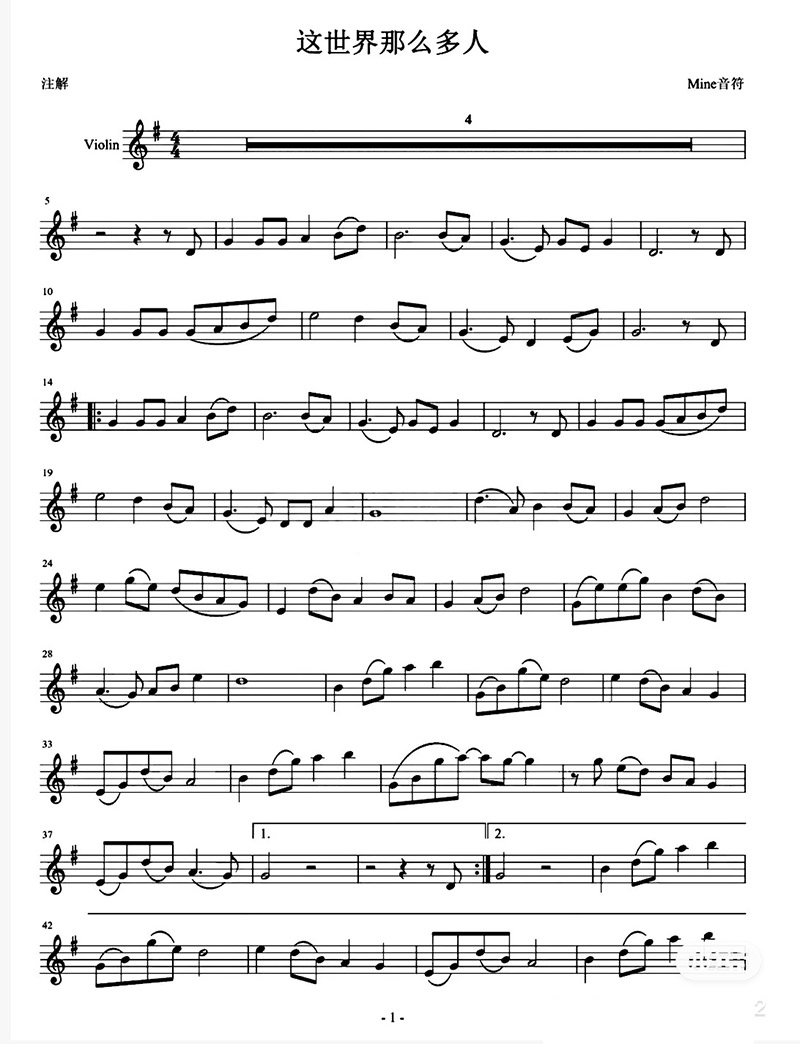 今天提琴屋就把《這世界那么多人》的小提琴譜分享給大家,這首歌曲用小提琴演奏非常的簡單,而且很好聽,大家一定要好好練習喲!